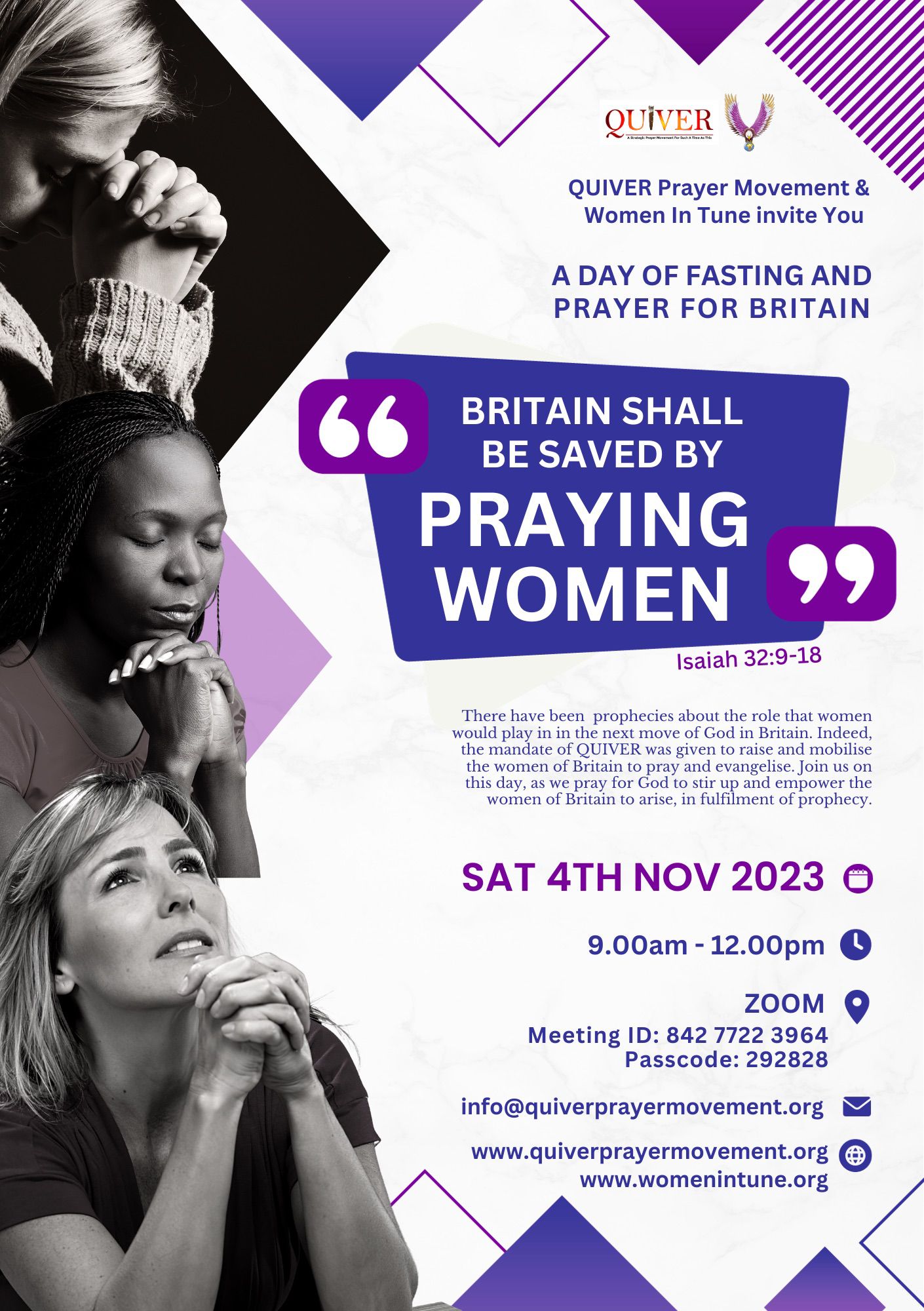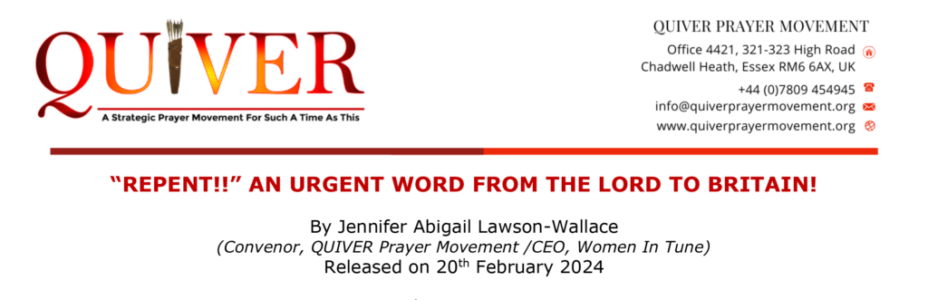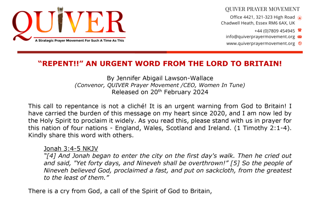 A QUIVER Prayer Movement Call to 3 Days Of Prayer And Fasting For Britain. Click on link for more information.