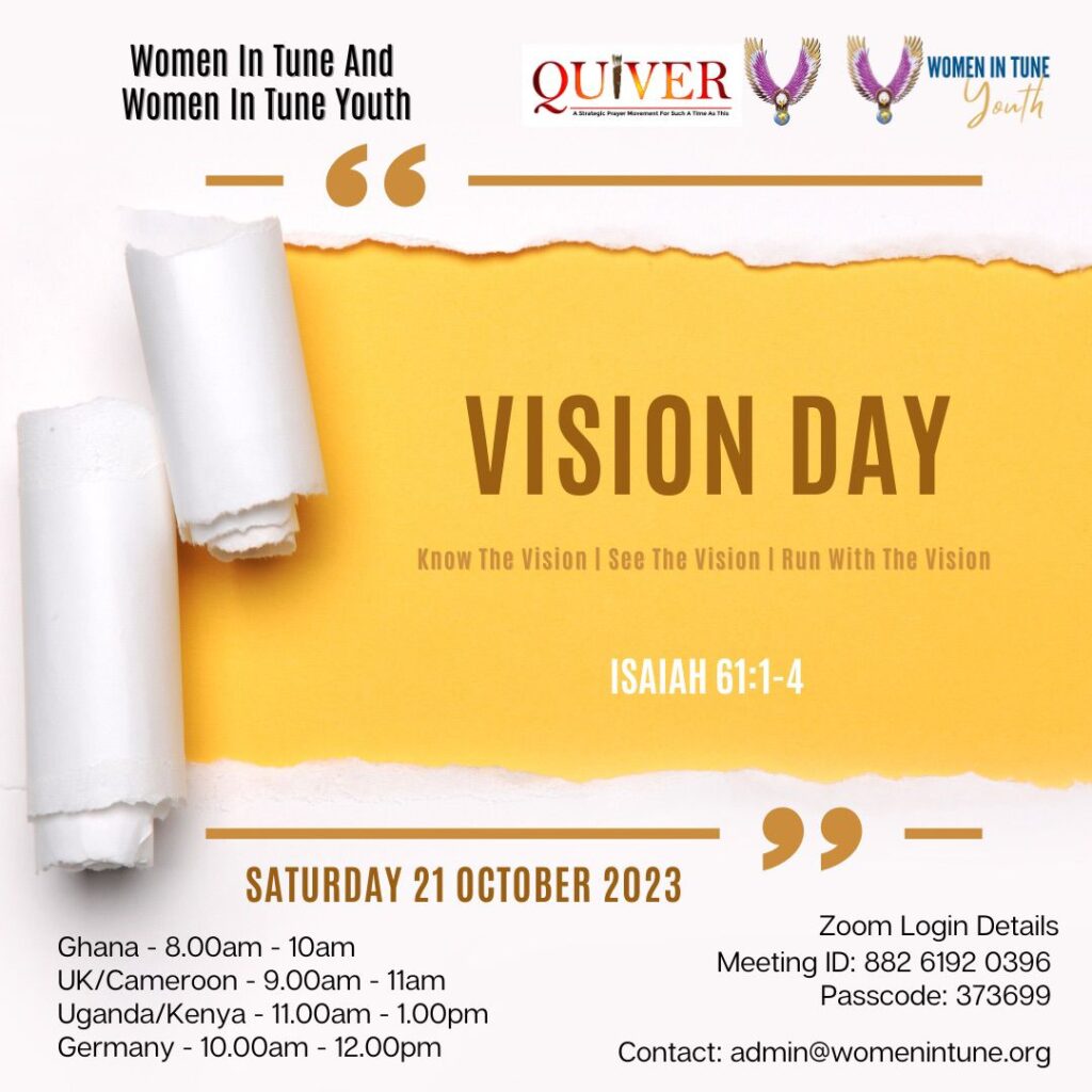 On 12th February 2010, the Lord woke me up from sleep and spoke clearly to me, “Gather the women to pray!” My response was “Yes Lord, but how?” He then proceeded to give me the strategy of small groups of up to five women, and the name QUIVER.